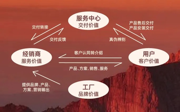 ① 以片区为基础建立服务中心,经销商无需忧品牌与产品力,顶固强品牌背书 + 优质产品,助其输出好服务,借用户认可转介绍,降拓客成本、提盈利效率